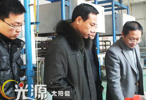 祁主任一行饒有興致地參觀了太陽能熱水器生產流水線,并就校企合作、定向培養(yǎng)、學生實習與就業(yè)等與總經(jīng)理劉迎波進行了座談與交流。