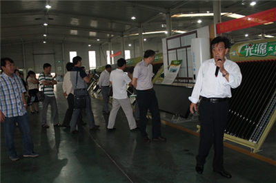(光源太陽能公司副總經(jīng)理向考察團介紹太陽能真空管)