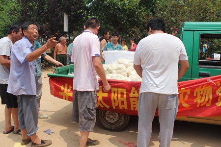根據(jù)開(kāi)發(fā)區(qū)管委會(huì)統(tǒng)一安排,轄區(qū)內(nèi)企業(yè)對(duì)受災(zāi)村民在生活上進(jìn)行對(duì)口支援。光源太陽(yáng)能公司與其他幾家企業(yè)支援景家屯村。其中光源公司為景家屯300名村民提供一日三餐,解決300口人的生活問(wèn)題。