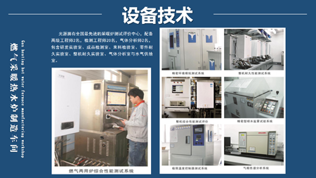 光源擁有全國最先進(jìn)的采暖爐測試評價(jià)中心,配備高級工程師2名,檢測工程師20名,氣體分析師2名,包含研發(fā)實(shí)驗(yàn)室、成品檢測室、來料檢驗(yàn)室、零件耐久實(shí)驗(yàn)室、整機(jī)耐久實(shí)驗(yàn)室、氣體分析室與水氣供給室。